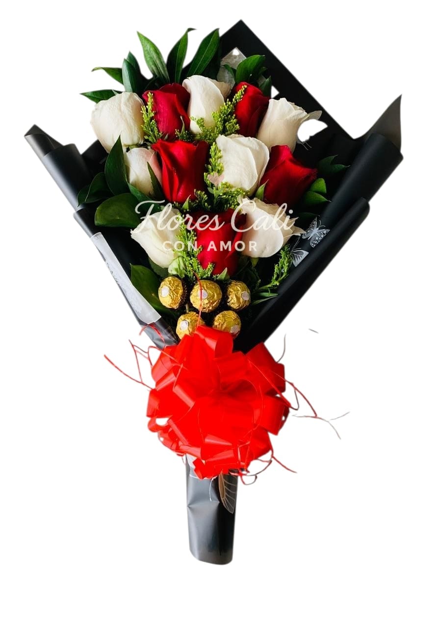 Este encantador bouquet de rosas naturales combina elegancia y dulzura para crear un regalo inolvidable. Diseñado cuidadosamente por Flores Cali Con Amor, este arreglo floral está compuesto por: