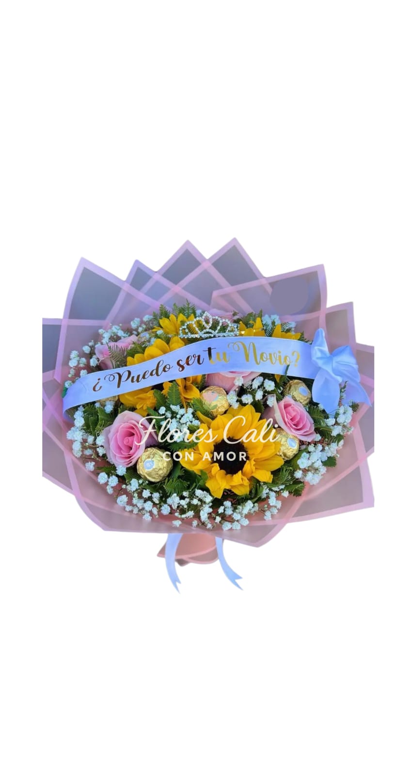 Este bouquet está diseñado para transmitir sentimientos genuinos con un toque de dulzura, elegancia y creatividad. 🌻🌹🍫