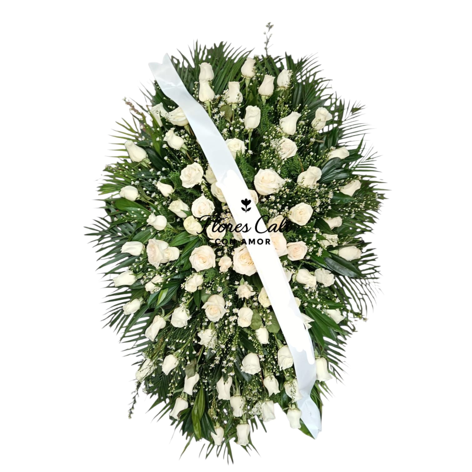 Ideal para enviar condolencias, acompañar ceremonias religiosas o rendir homenaje en velaciones, esta corona fúnebre se entrega con una cinta personalizada donde podrás expresar tu mensaje de amor y despedida.